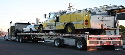Flatbed dimensions are 48' or 53' long and are 5' high. You can only load units that are under 102" high and weigh up to 48,000 lbs. You can not permit over height on this type of truck; you will need a stepdeck instead. See below.